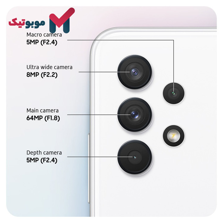 کیفیت دوربین: چهارگانه 64 مگاپیکسل + 8 مگاپیکسل + 5 مگاپیکسل + 5 مگاپیکسل