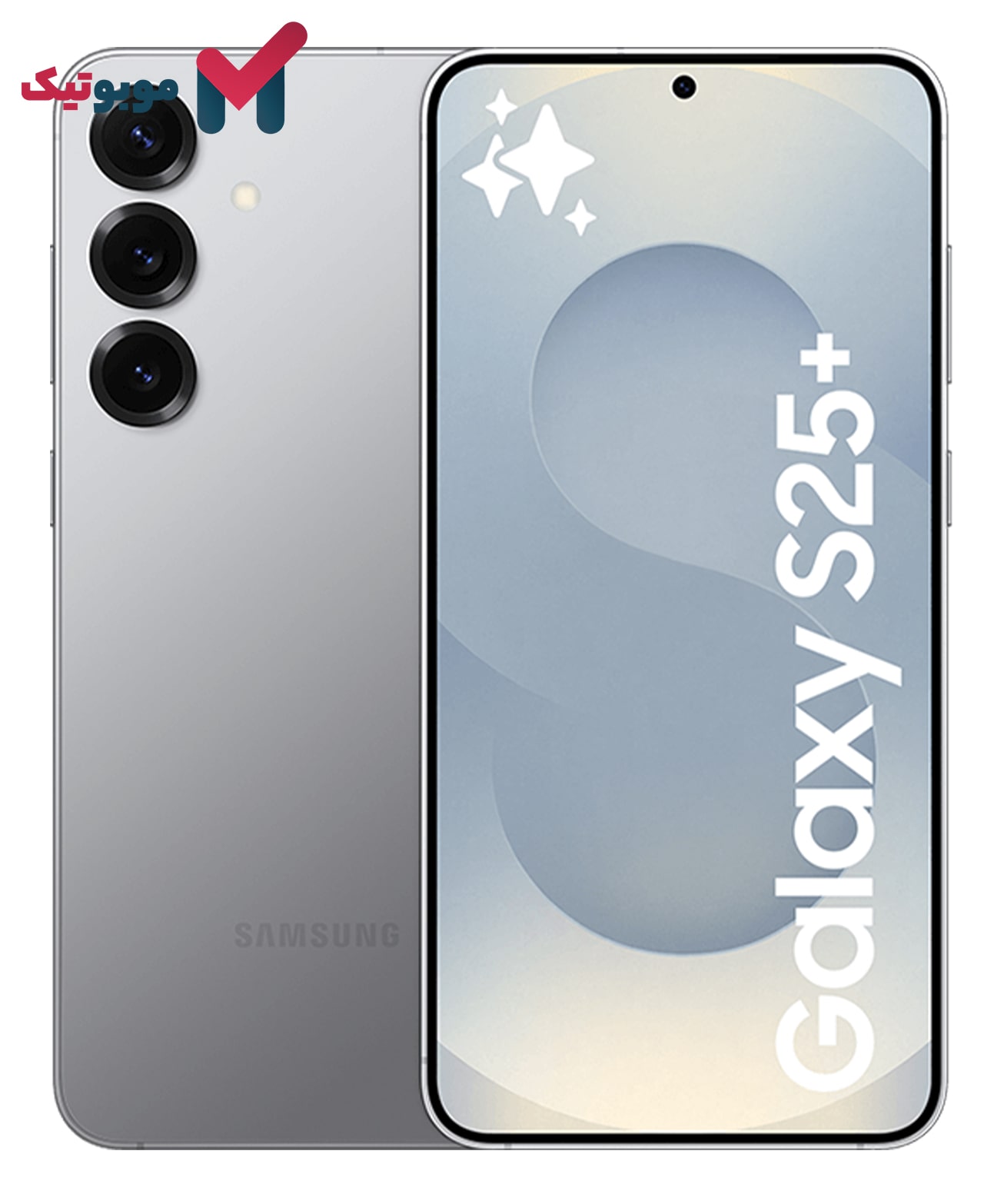 گوشی سامسونگ Galaxy S25 Plus، رنگ آبی یخی درخشان، نمایی از پشت و جلو